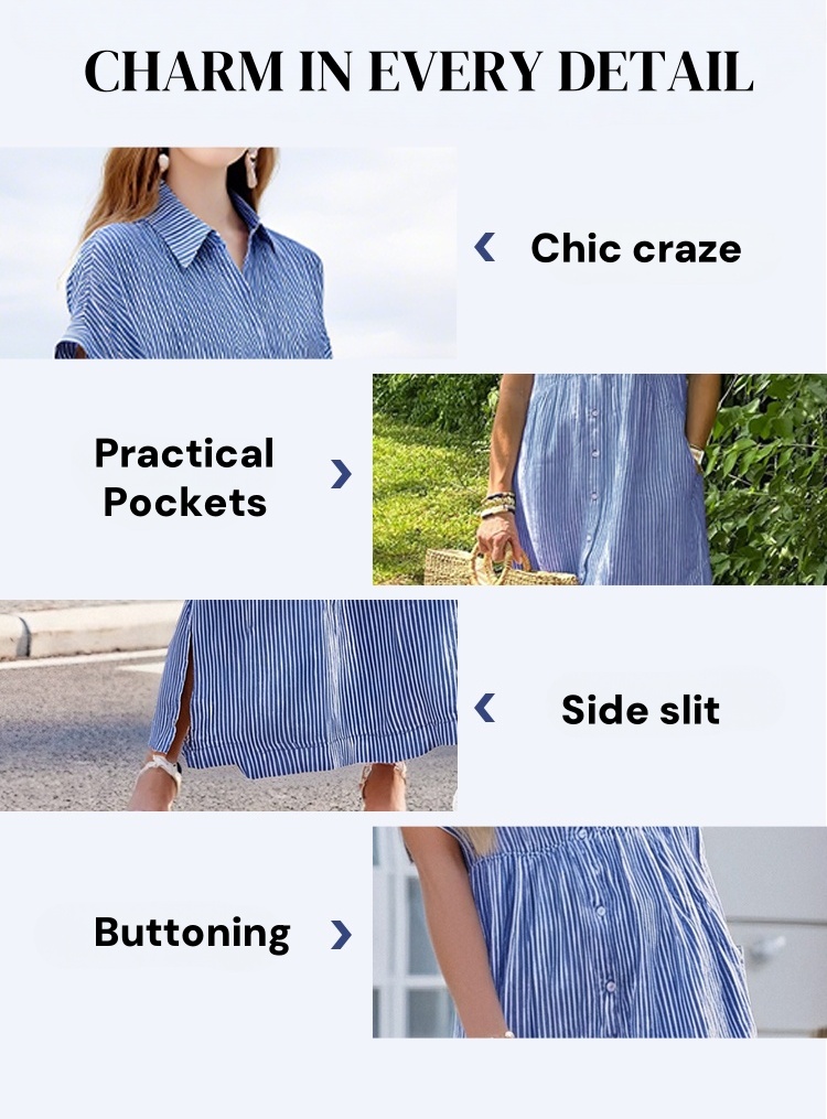 The Striped Lapel Button Down Shirt Dress is designed for the modern woman who cares about sophistication and style. The elegant Maxi long dress is perfect for any occasion.