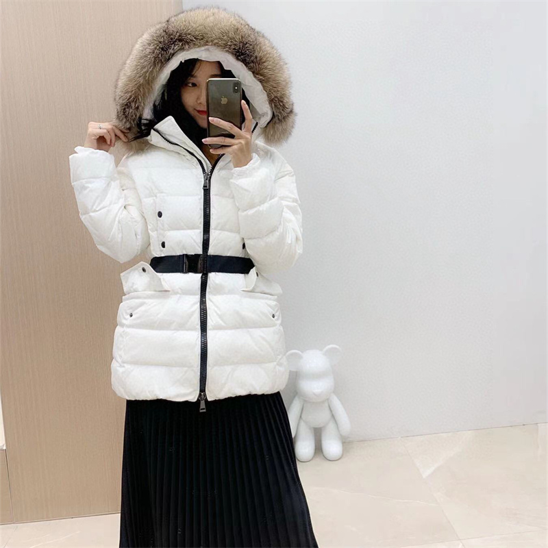 Winter jacket for women big fox fur 90% white duck down filler puffer jacket