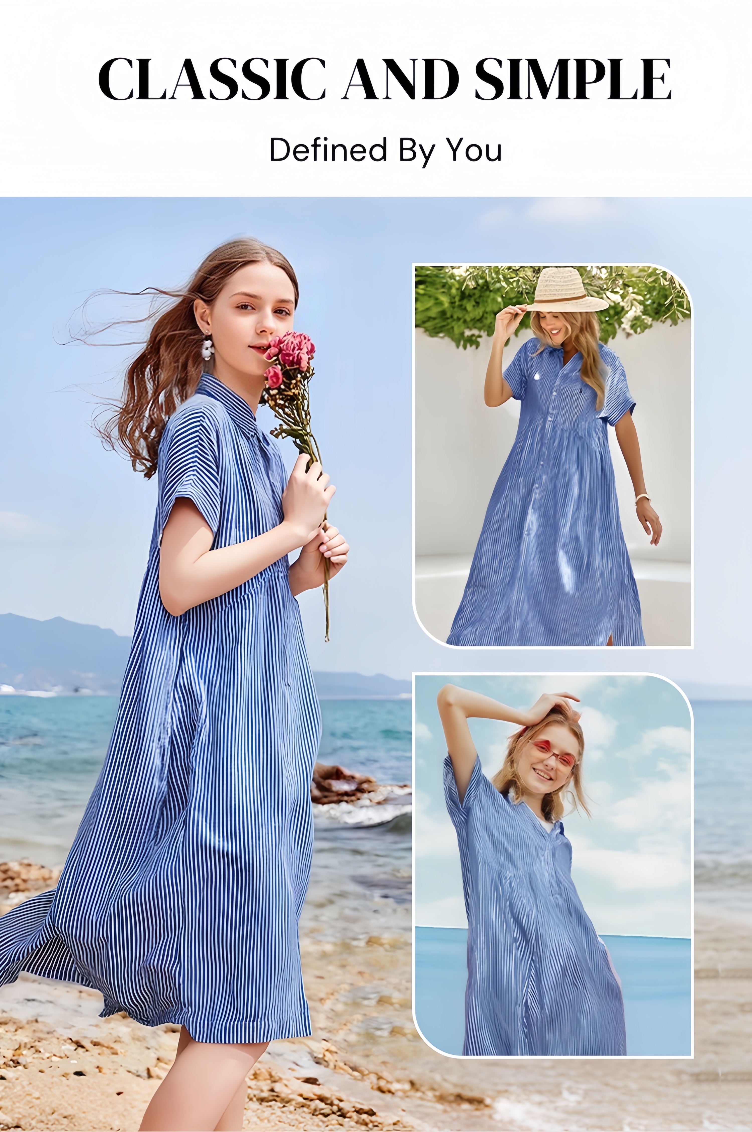 The Striped Lapel Button Down Shirt Dress is designed for the modern woman who cares about sophistication and style. The elegant Maxi long dress is perfect for any occasion.